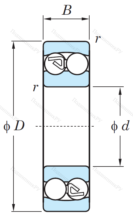 Конструкции этого типа, производящиеся фирмами FAG, KOYO, NSK, SKF, SNR, имеют два ряда шарикоподшипников, внешнюю выпуклую шину и внутреннюю обойму, в которой находится монтажное цилиндрическое отверстие. Воспринимают радиальные и осевые вектора приложения, включая двустороннюю нагрузку по оси (она не должна превышать 20% от лучевой).