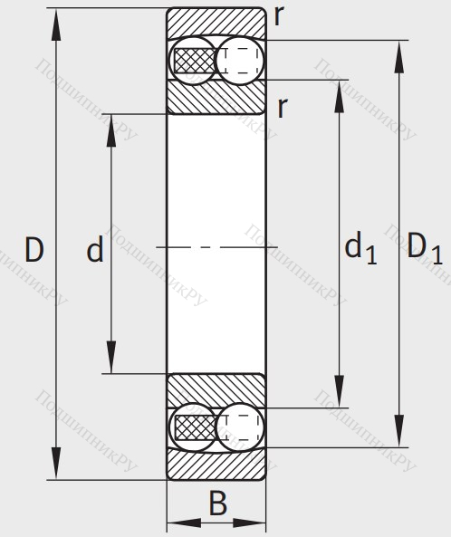 Какими характеристиками обладает Двухрядный шариковый подшипник 2306 TVH?