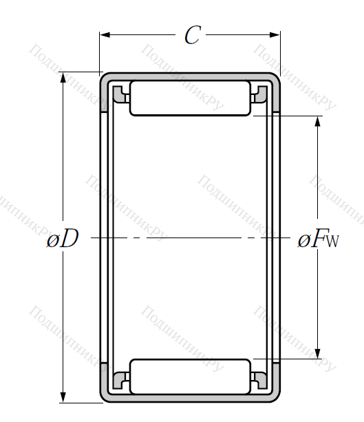 Игольчатый подшипник HK 4516 имеет неразъемную конструкцию, в которую входят игольчатого вида тела качения и наружная штампованная шина. Как правило, является однорядным, без каналов для подачи смазочного материала.