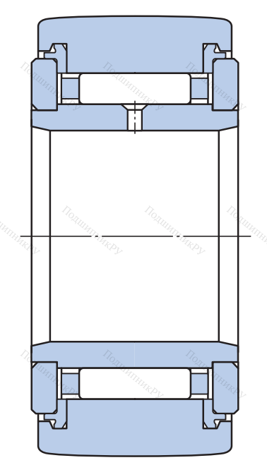 Игольчатый подшипник NATV 40 PP A в своей неразъемной конструкции имеет иглоролики, находящиеся в наружной толстостенной обойме, и зафиксированные на внутреннем кольце боковые диски. Сепаратор может присутствовать либо отсутствовать: в первом случае повышается ударопрочность и скорость вращения, но снижается грузоподъемность, и наоборот.