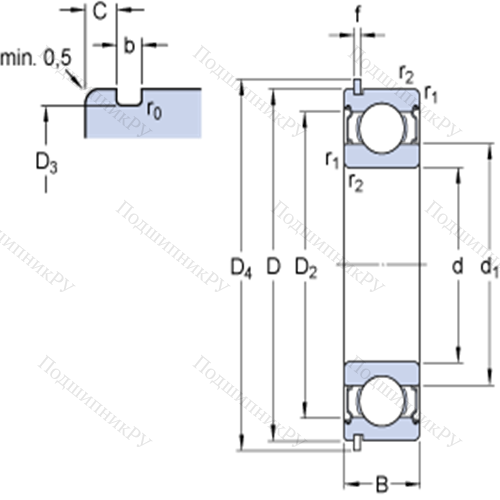 Однорядные радиальные шарикоподшипники с канавкой под стопорное кольцо 6202-2ZNR