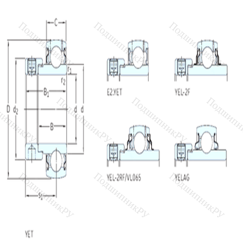 Каковы характерные особенности Подшипник шариковый радиальный E2.YET208-108?