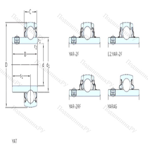 Подшипник шариковый радиальный YAR218-2F его строение включает в себя наружную шину, тела качения, сепаратор из штампованной стали, латуни или полиамида, центрирующийся по шарикам либо бортикам внешнего кольца. Устройство является неразборным и полностью готово к монтажу. Существуют также обслуживаемые и необслуживаемые варианты (в первом случае в корпусе детали имеется специальное смазочное отверстие, через которое происходит подача смазки, расходуемой в процессе работы). Закрытые модели дополнительно усилены уплотняющими шайбами или уплотнениями и не требуют обслуживания. В изделии также могут присутствовать узкие, широкие и средние зазоры.