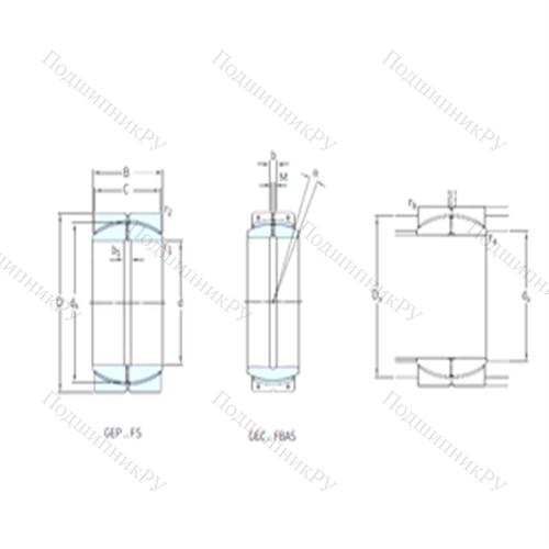 Подшипник скольжения сферический GEP360FS конструкция которого представлена внешним кольцом, внутри вращается внутренняя обойма. Существуют прямые, шарнирные (самовыравнивающиеся), угловые, гидравлические, двойные шарикоподшипниковые и роликоподшипниковые варианты исполнения. Отдельные разновидности изделий (с парой трения «сталь – сталь») нуждаются в обслуживании и имеют каналы для подачи смазки, в то время как другие не нуждаются в ТО. В первом случает система включает в себя пару стальных шин, обработанную предварительно фосфатами и дисульфитом молибдена. Необслуживаемые модели покрываются политетрафторэтиленом, армируются медью и дополнительно усиливаются хромом.