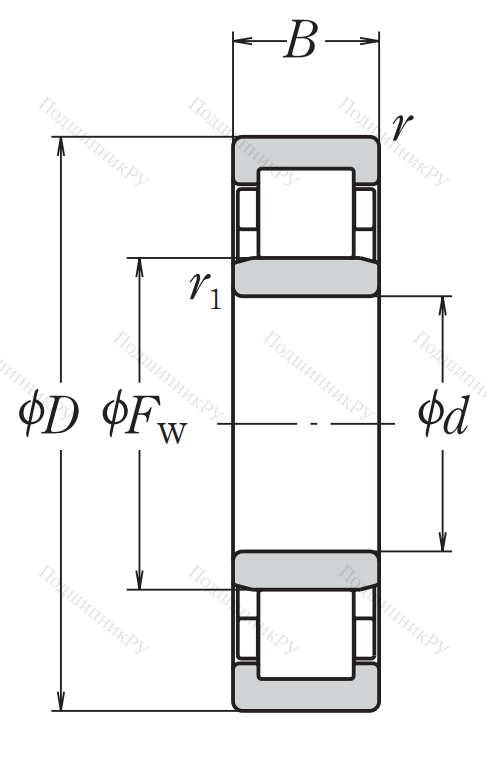 Роликовый цилиндрический подшипник NU 214 W C3, это разновидность однорядного роликоподшипника в метрическом исполнении.