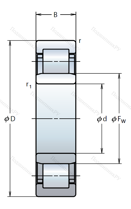 Роликовый цилиндрический подшипник NU 230 M C3, это разновидность однорядного роликоподшипника в метрическом исполнении.