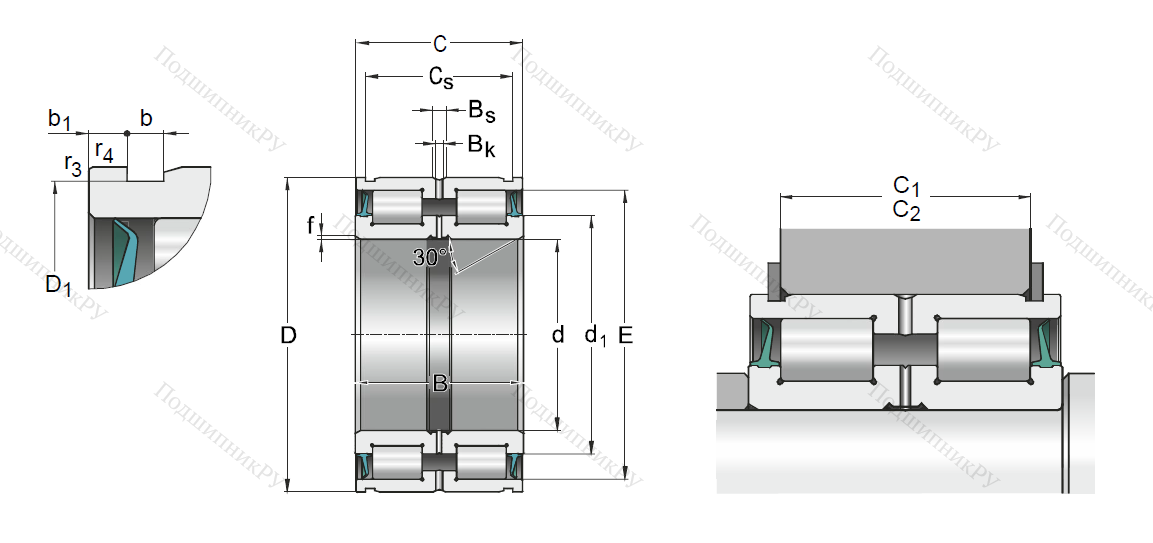 - плоская массивная наружная обойма цилиндрического типа, на которой выполнена проточка для установки стопорного кольца;