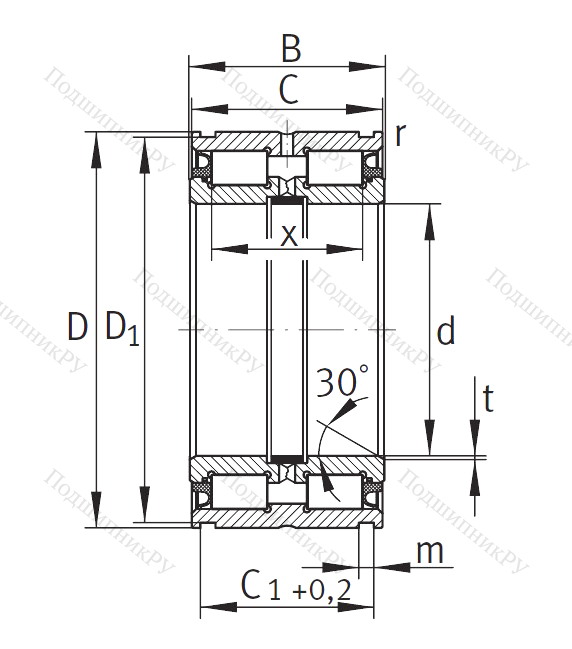 - плоская массивная наружная обойма цилиндрического типа, на которой выполнена проточка для установки стопорного кольца;