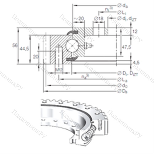 В чем плюсы и особенности Подшипник шариковый опорно-поворотный VLA 20 0644 N?