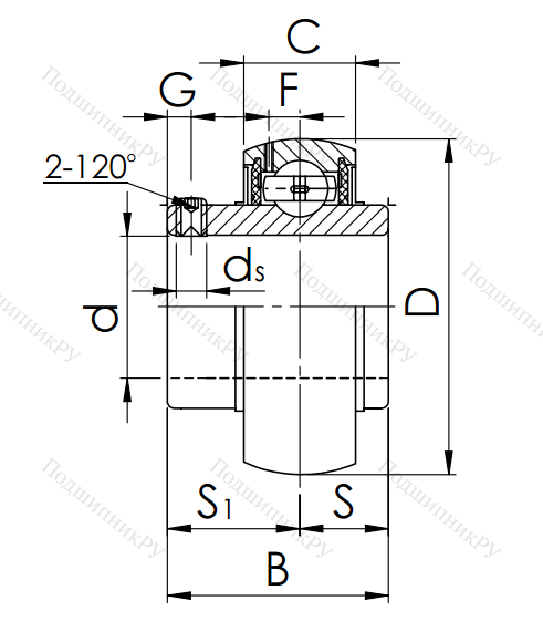 Шариковое радиальное подшипниковое тело, имеющее однорядную конструкцию с расширенной внутренней шиной и двумя уплотнениями. Данное кольцо может выпускаться с различными вариантами крепежа: втулка для закрепления, стопорное эксцентриковое кольцо, винты. Конструкция предназначена для работы совместно с корпусами типов UCP, UCT, UCF, UCPA, UCFL с шириной или высотой подшипника B(H): 31мм.