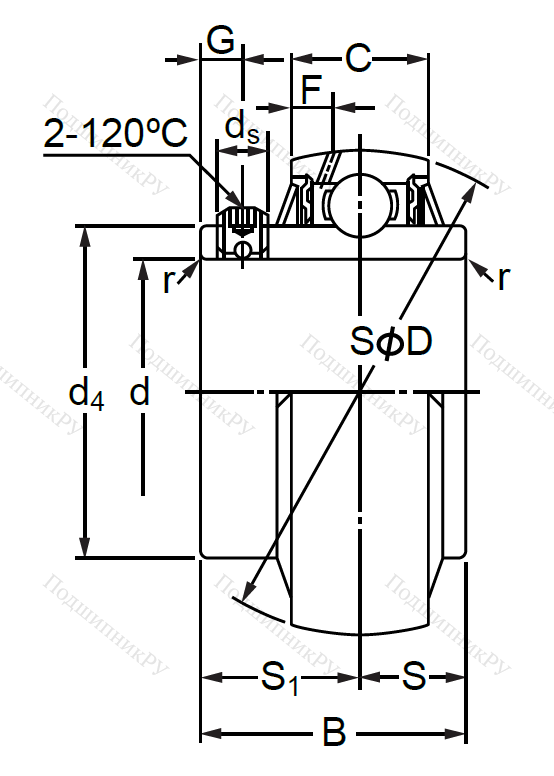 Шариковое радиальное подшипниковое тело, имеющее однорядную конструкцию с расширенной внутренней шиной и двумя уплотнениями. Данное кольцо может выпускаться с различными вариантами крепежа: втулка для закрепления, стопорное эксцентриковое кольцо, винты. Конструкция предназначена для работы совместно с корпусами типов UCP, UCT, UCF, UCPA, UCFL с шириной или высотой подшипника B(H): 42.9мм.