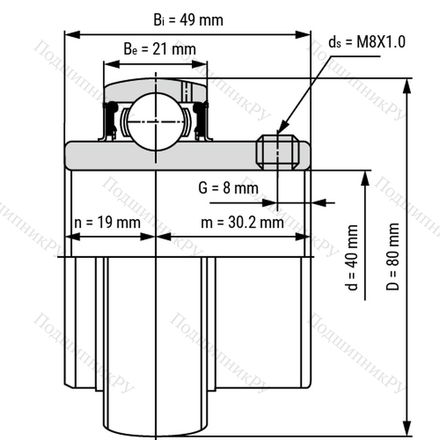 Корпусной шариковый подшипник MUC208-V имеет основные размеры 40x80 мм