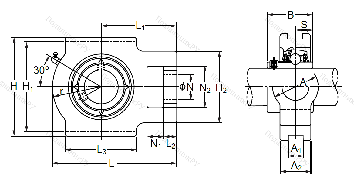 Конструкция, служащая гнездом для удержания подшипника и его установки на поверхности опоры. Может быть обслуживаемой или необслуживаемой. Крепление происходит при помощи одного или нескольких болтов. Встречаются разновидности овальной, квадратной, ромбовидной, Т-образной и круглой форм.