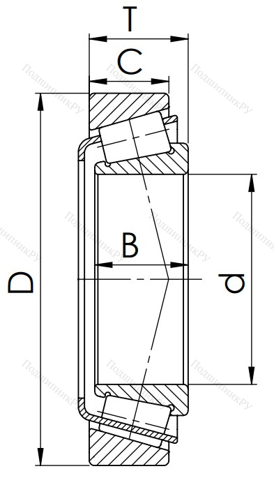 Строение данного типа детали состоит из сепаратора, роликов, а также двух колец, располагающихся снаружи и внутри. Отличительной чертой механизма является конусовидная форма роликов, удерживаемых ободом кольца, благодаря чему они могут одновременно воспринимать сочетание осевых и радиальных нагрузок.