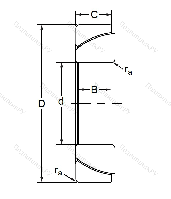 Закажите онлайн Шарнирный подшипник GAC 60 F весом от 0гр. до 50гр. с внутреним диаметром от d - 60мм до 150мм и наружным от D - 95мм до 225мм сегодня!